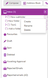 Folders: Create, rename and delete folders by clicking on the kebab menu in the folders area.
